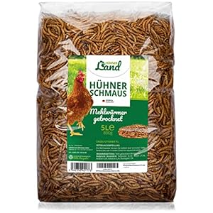 HÜHNER Land Mehlwurm Schmaus, Feinkost Mehlwürmer getrocknet 5 Liter für Ziergeflügel, Reptilien – Ziergeflügelfutter…
