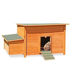 Melko Katzenhaus Grau/Weiß 50 x 45 x 43 cm mit klappbarem Deckel und Rampe, Winterfest