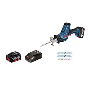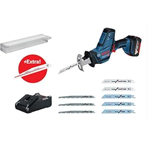 Bosch Professional 18V System Akku Säbelsäge GSA 18V-LI (inkl. 2×4.0 Ah Akku, Ladegerät GAL 18V-40, 2xSägeblatt, in L…