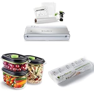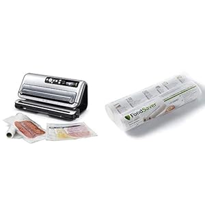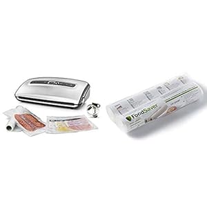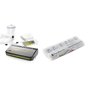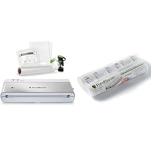 FoodSaver FFS005X Folienschweißgerät/Vakuumierer/Vakuumiergerät + Foodsaver FSR2802-I Vakuum-Rollen 2 Stück 28×550 cm…