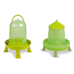 Geflügeltränke und Futterautomat Hühner mit StandfüÃen im Set Hühnertränke Futterspender Futtertrog Stand FüÃen Wassertränke grün Set 3.