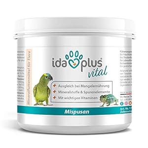 Ida Plus – Mispusan Pulver 200 g – Mineralfuttermittel mit Vitamin D3, Calcium & Spurenelementen für Amphibien, Reptilien & Vögel – Wellensittich, Kanarienvogel, Papageien & Bartagame – Mineralstoffe