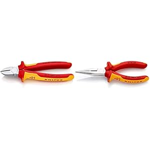 KNIPEX 70 06 180 Seitenschneider verchromt isoliert mit Mehrkomponenten-Hüllen, 180 mm & 25 06 160 Flachrundzange mit…