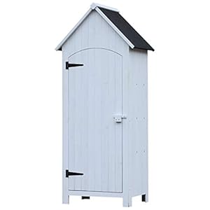 Outsunny Gartenschrank Holz Gerätehaus Gartenhaus Geräteschuppen Geräteschrank Holzhütte Giebeldach Bitumenpappe Weiß 77…