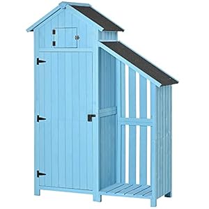 Outsunny Gartenhaus Gerätehaus Geräteschuppen mit Brennholzlagerraum Geräteschuppen mit 3 Ablagen Asphaltdach Tannenholz…