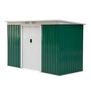 Outsunny Gerätehaus, Gartenhaus, Geräteschuppen mit Schiebetür, Lüftungsfenster, Pultdach, Outdoor, Stahl, Dunkelgrün…