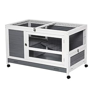 PawHut Kleintierstall Zwergkaninchenstall mit öffenbarem Asphaltdach Kleintierkäfig Outdoor Indoor Hinterhof…