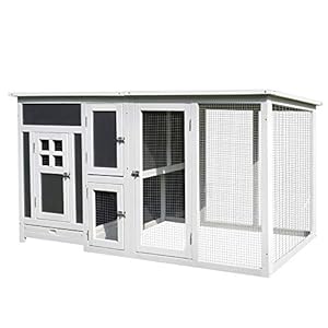 PawHut Hühnerstall Hühnerhaus Geeignet für 1-2 Hühner, mit Nistkasten Eierkiste mit 2 Fächern, Tanne, Grau+WeiÃ, 160 x 75 x 80 cm