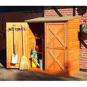 Promadino Holz-Geräteschrank klein Gerätehaus Schuppen Schrank aus massivem Kiefernholz