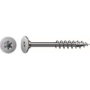 SPAX 257000800805 Für den Holzbau, Tellerkopf, T-STAR plus, 4CUT, Vollgewinde Edelstahl rostfrei A2, 1.4567, (8,0 x 80…