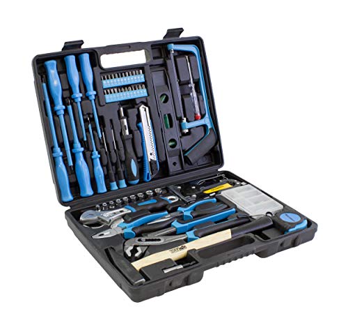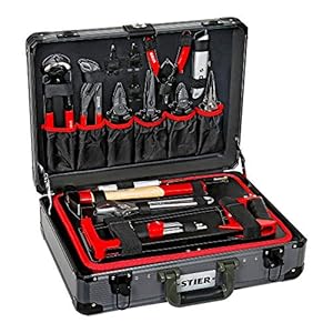 STIER Werkzeugkoffer mit 60-teiligem Werkzeugsortiment, inkl. Umschaltknarre, bestückt mit Hammer, Maulschlüssel, Zange…