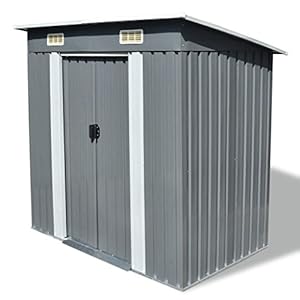 Tidyard Gartenhaus Metall Gerätehaus Geräteschuppen Metallgerätehaus Geräteschrank Metallschuppen mit Schräge Dach, Grau…