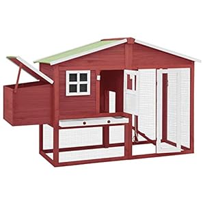 Tidyard Hühnerkäfig mit einer rutschfesten Rampe für den leichteren Zugang zum Obergeschoss Witterungsbeständig Hühnervoliere Hühnerstall Hühnerhaus Entenstall Rot 170Ã81Ã110 cm Massivholz