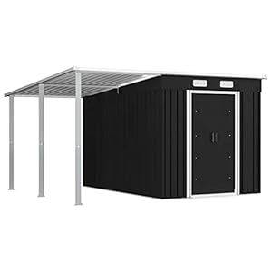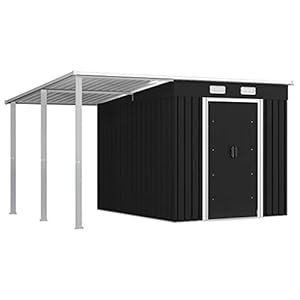 vidaXL Gerätehaus mit Vordach Geräteschuppen Gartenschuppen Werkzeugschuppen Gartenhaus Schuppen Anthrazit 336×270×181…