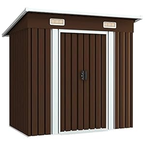 vidaXL Geräteschuppen mit 4 Entlüftungsöffnungen Schiebetür Gerätehaus Gartenhaus Schuppen Gartenschuppen Braun 204x132x186cm Stahl