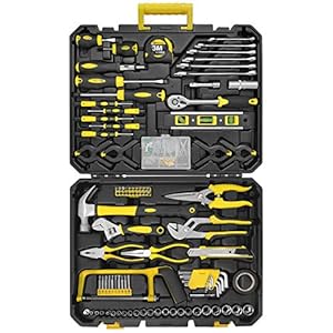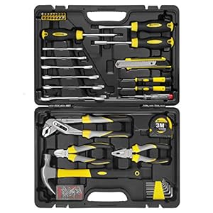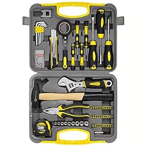 WZG Werkzeug 60-teilig Werkzeugkoffer ideal für den Haushalt DIY (Gelb)
