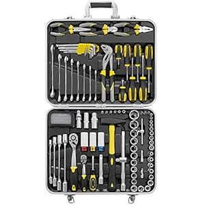 WZG Werkzeug 116-teilig Werkzeugset im Koffer, Chrom Vanadium Steckschlüssel Set