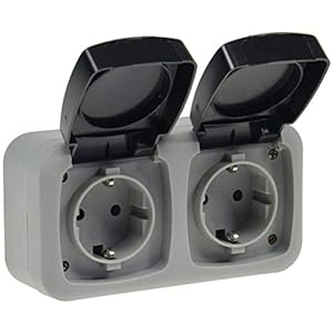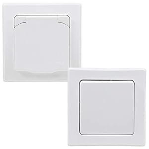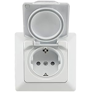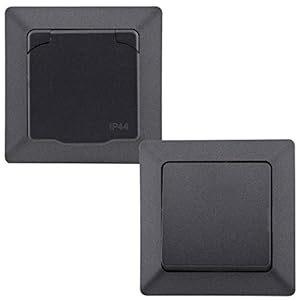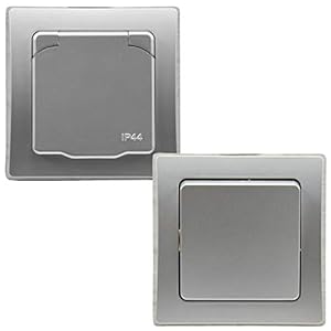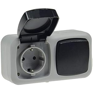 DELPHI IP44 Steckdose und Schalter für Aussen 250V Unterputz Schutzkontakt-Steckdose mit Klappdeckel Wechselschalter für…