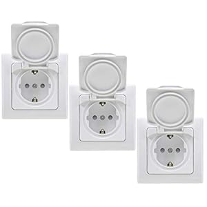 Steckdose Unterputz für Badezimmer Küche – IP44 für Innen & Aussen Feuchtraum 3 Stück 250V~ UP-Steckdose mit Klappdeckel…