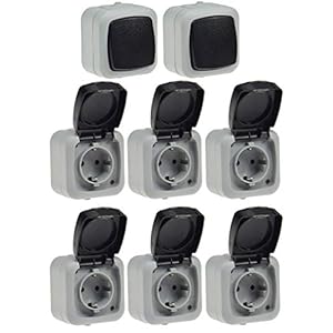 Feuchtraum Steckdosen Lichtschalter Set 8-teilig IP44 6x Steckdose 2x Schalter I Aufputz Montage I 230V I Klappdeckel…