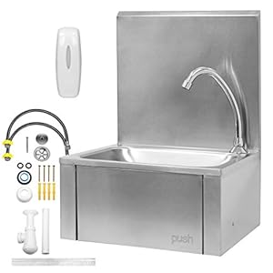 ECD Germany Handwaschbecken mit Wasserhahn ca. 34 x 40 x 56,5 cm – aus Edelstahl – Volumen 8 L – Kniebedienung – inkl…