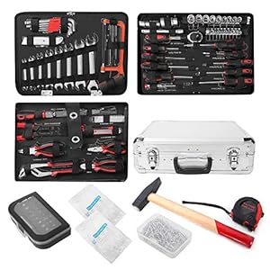 170 Stück Werkzeugkoffer, Werkzeugtrolley Handwerkzeugset Trolley Box mit Schraubenschlüssel Hardware Reparatur…