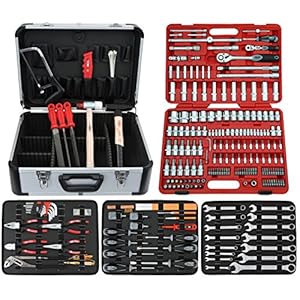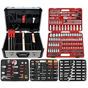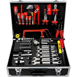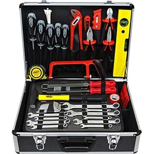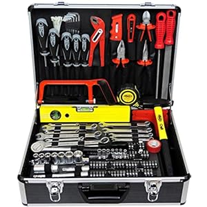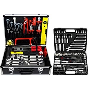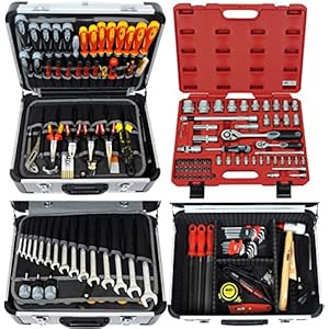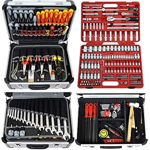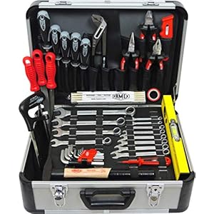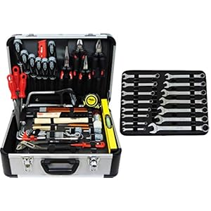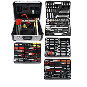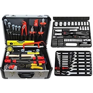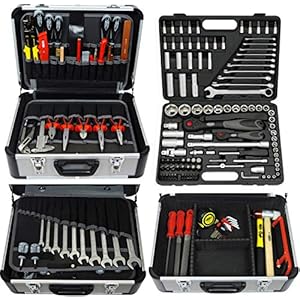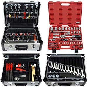 FAMEX 749-94 Profi Werkzeugkoffer gefüllt mit Werkzeug | Werkzeugkiste aus Aluminium mit Werkzeug-Set | Werkzeugkasten…