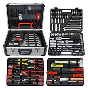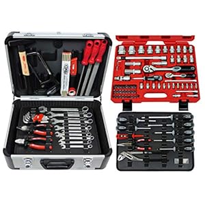 Famex 414-20 Premium Alu Werkzeugkoffer gefüllt mit TOP Werkzeug Set und 174-tlg. Steckschlüsselsatz | viele Werkzeuge…