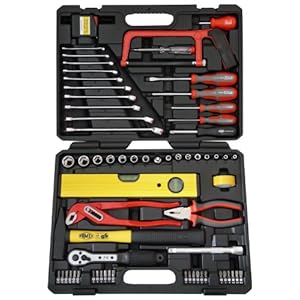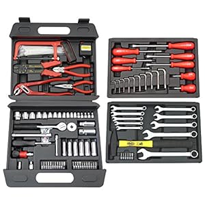 Famex 744-98 Werkzeugkoffer gefüllt mit Werkzeug – Werkzeugkiste bestückt mit Werkzeug-Set – Werkzeugkasten