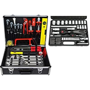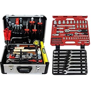 Famex 418-20 Alu Werkzeugkoffer gefüllt mit TOP Werkzeug Set und 66-tlg. Steckschlüsselsatz | viele Werkzeuge aus…
