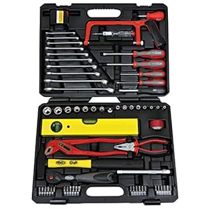 FAMEX 145-FX-48 Werkzeugkoffer gefüllt mit Werkzeug – Werkzeugkasten befüllt – Werkzeug Set mit 72-Zahn-Knarre