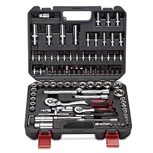 JIXIN Werkzeugset, Werkzeugkasten Steckschlüsseln, Werkzeugkoffer, Steckschlüsselsatz, Profiwerkzeug, Ratschenset