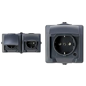 Kopp Nautic Steckdose für Feuchtraum, Aufputz, 250V (16A), 2-fach Schutzkontakt-Steckdose mit Deckel, grau & Nautic…