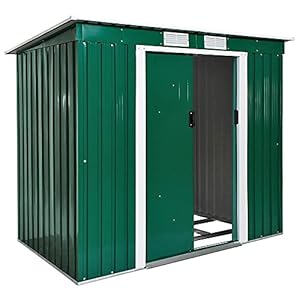 LCSA Metall Gerätehaus Geräteschuppen Garten Schuppen Gartenhaus Satteldach Pultdach (Color : Typ 2 | Grün | Nr. 402183)