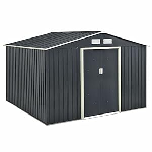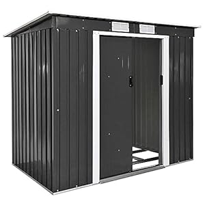 LCSA Metall Gerätehaus Geräteschuppen Garten Schuppen Gartenhaus Satteldach Pultdach (Color : Typ 4 | Grau | Nr. 402569)