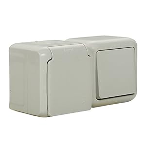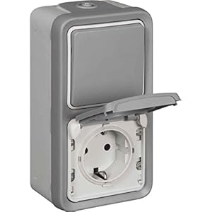 Legrand, Feuchtraum Aufputz Steckdosen-Schalter Kombination (waagerecht) IP44, Steckdose mit Schutzkontakt & Deckel,zur…