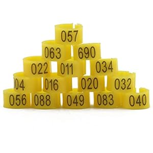 M.Z.A 100 Stück nummerierte Vogel-Beinbänder für Geflügel, Hühner, Wachteln, Taube, Taube, Fußringe 001–100 (gelb)