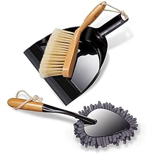 Masthome Bambus Handfeger und Schaufel Set, Bambus Kehrset mit Schnur zum Aufhängen Handfeger und Chenille Staubwischer…