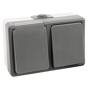MC POWER – Aufputz Feuchtraum-Kombidose | SECURE | Schalter und Steckdose, vertikal, grau, IP44