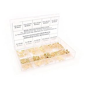 Sortimentskasten mit 360 Stück kleinen Holzschrauben nach DIN 97 aus Messing (ab 1,6x8mm), Schlitz, Senkkopf…