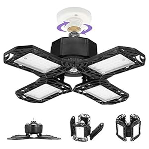Werkstattlampe, 120W Led Deckenlampe Schwarz mit 12000 Lumen Verformbarem Vierblättrigem Panel, Led Lampe E27 für…
