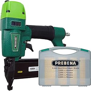 PREBENA 2XR-J50 Luftdruck Druckluftnagler im Transportkoffer + J-BOX 8,000 Stauchkopfnägel/Brads, Grün