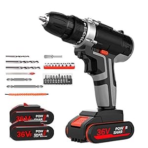 S SMAUTOP 36V Akkuschrauber 2 Geschwindigkeit und 15 Drehmoment Einstellbar Eingebautes LED-Arbeitslicht Bohrmaschine…