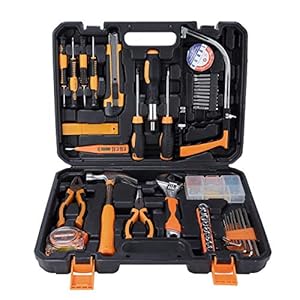 SOLUDE Heim-Werkzeug-Sets, 95 Teile Bügelsäge, allgemeine Haushalts-Handwerkzeug-Kits mit Kunststoff-Werkzeugkoffer.