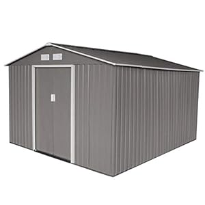 HATTORO S300 Metall Gerätehaus XXXL 277x319x192cm Geräteschuppen Garten Schuppen Gartenhaus Satteldach Hellgrau