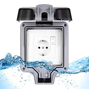 Außensteckdose Steckdose für Feuchtraum Aufputz Schutzkontakt Außensteckdose IP66 Wetterfest Hochleistungs-2Fach-Schalt…
