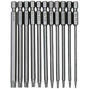 ToKinCen 11 Stück Torx lang Schraubendreher Bit Set 1/4″ 100mm Lang Magnetisch Sternenkopf Schraubenziehe Set T6-T40 Sechskant Schaft Elektrische Torx Bits Satz Schraubendreher Werkzeuge
