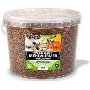 UGF – Premium Mehlwürmer Getrocknet – 460g im 3 Liter Eimer, Vogelfutter Wildvögel Ganzjährig, Igelfutter, Eichhörnchen Futter, Hamster Futter