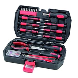 Kompakter & kleiner Werkzeugkoffer bestückt mit Schraubenzieher-Set. Kleines Werkzeug-Set mit rotem Werkzeug für Outdoor…