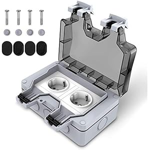 Außensteckdose Aufputz IP66, Außensteckdosen Wasserdicht Unterputz Doppelt Steckdose für Garten Feuchtraum Aufputz 2fach